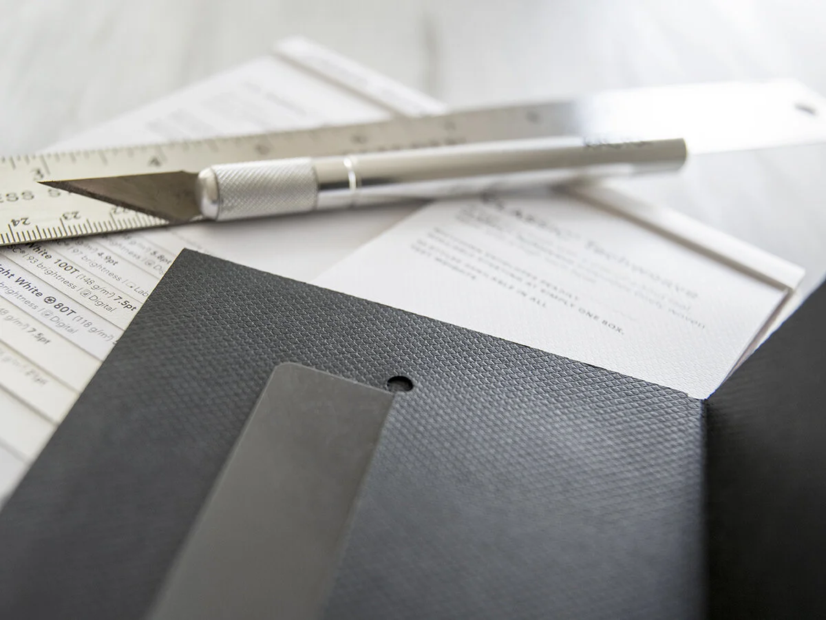 I’ve been working on new gift card packaging for a boutique retail client, including specialized boxes and a custom sleeve. In presenting these ideas, I source samples of the proposed paper stocks and create unprinted mockups so the client can not only better visualize the concepts, but tangibly hold them. Details such as weight and texture equally communicate a brand, and must be considered in the design and production process.